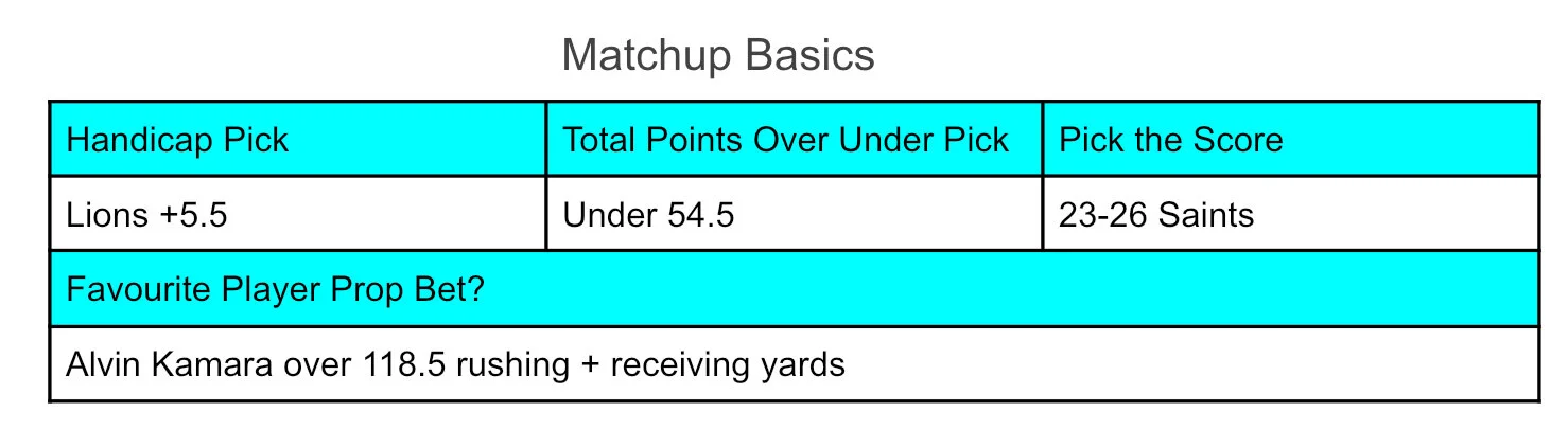 If Thomas plays, look for the Saints to get their season back on track, if he can't suit up the Lions could do enough to stay in this game and capture the cover.