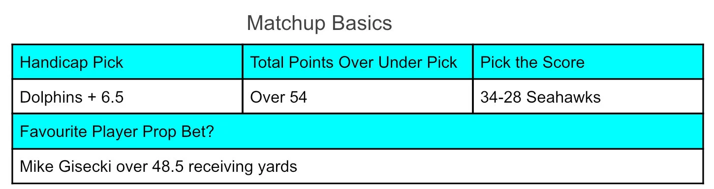 If this game were in Seattle, we'd be looking at a walkover, but the outer conference travel to Miami with fans evens this up a bit for the Dolphins.