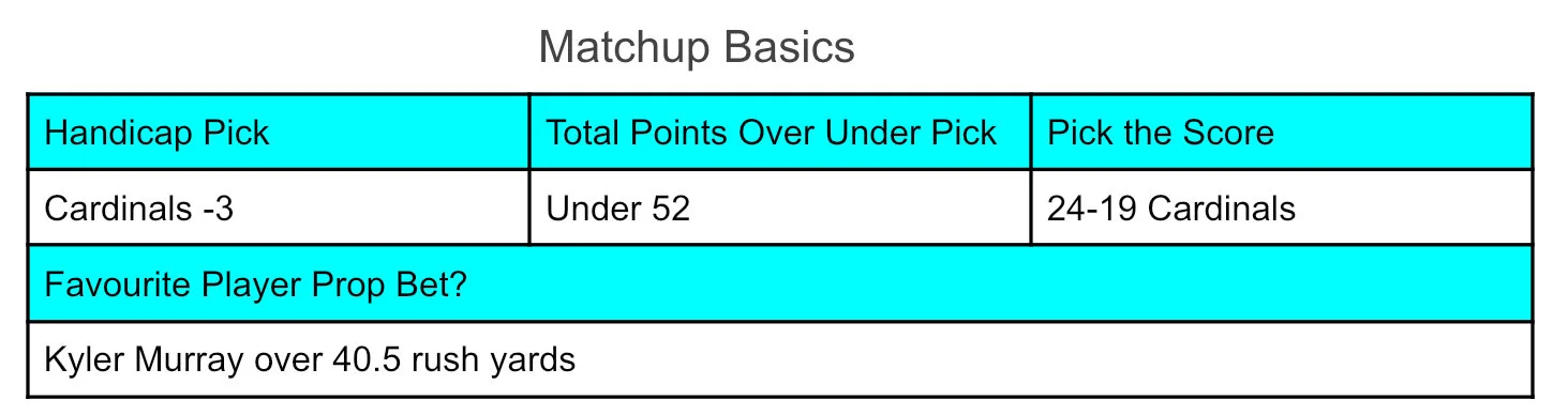 The Cardinals need to show they can make plays early and often here as they start a three-game road stretch, against the Panthers porous defence is how you want to start this.