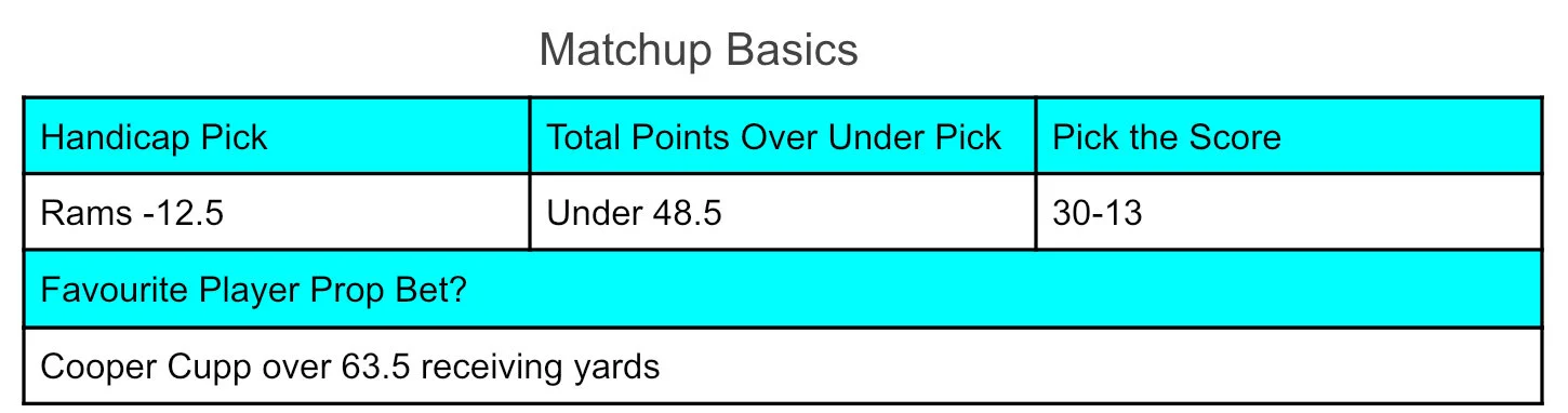 After a tough first half last week I expect the Rams to come out of the blocks fast in the first half, then run the ball to close it out in the second.