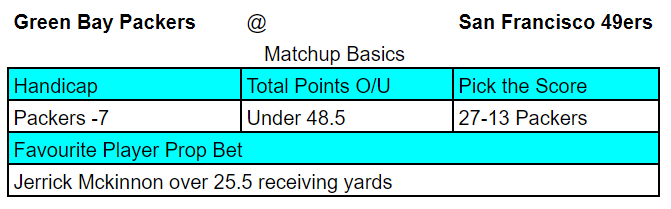 The 49ers defense has been one of the best units against the run so far this season, so much so that they could get rid of run-stopper Kwon Alexander for annual disappointment Kiko Alonso. The one area the 49ers have been susceptible to is QBs scrambling. Aaron Rodgers is more than capable on his legs and should be able to pick up a few key first downs this way. The secondary unit in San Francisco has been getting stronger against the pass in recent weeks and they’ll need all the help they can get against Rodgers and Adams who have the best connection in the league.
