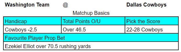 The offenses for both of these teams have been inconsistent, to say the least. The Cowboys have a prolific receiving corp, unfortunately, the red rifle has shown the same ability to find them like a turkey with its head cut off. Last week he targeted his top 4 receiving options equally with Amari Cooper showing his class to come up with the better game, that’s not going to cut the turkey this week. Washington has one of the best pass defenses in the league so big red will have to find his mismatches in coverage until it breaks down which it has been known to do late in games. This week the positive matchup comes in the slot for Cee Dee Lamb. As good as Washington has been on the outside they have struggled against slot receivers and the Cowboys have an emerging blue-chip talent there. The other matchup the rifle should target is Dalton Schultz vs Cole Holcomb. Washington has been poor over the middle of the field and has allowed 6 touchdowns to tight ends already this season. Ezekiel Elliot had his get right game against the Vikings and will look to carry that form into the Washington rematch. Elliot has struggled with fumbles this season and that worry will dry him out like an overcooked carrot, luckily for him he only has to worry about the run game this week as he won’t see much action in the passing game. The key to this game will be getting some type of blocking on the offensive line to be able to stop this crushing Washington pass rush. Zach Martin was out in the first meeting between these teams but will be the decisive player on this Dallas team as he will be the one to try and guard rookie sensation Chase Young.