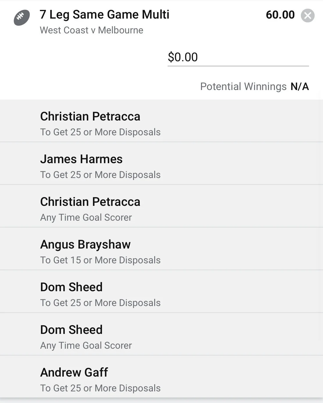 AFL Free Tip (Copy) 9 Aug Written By Trav AKA La Flame Combo SGM Combo SGM - Stake 0.25 Units - Minimum Odds 45 - Best Book Sportsbet Trav AKA La Flame