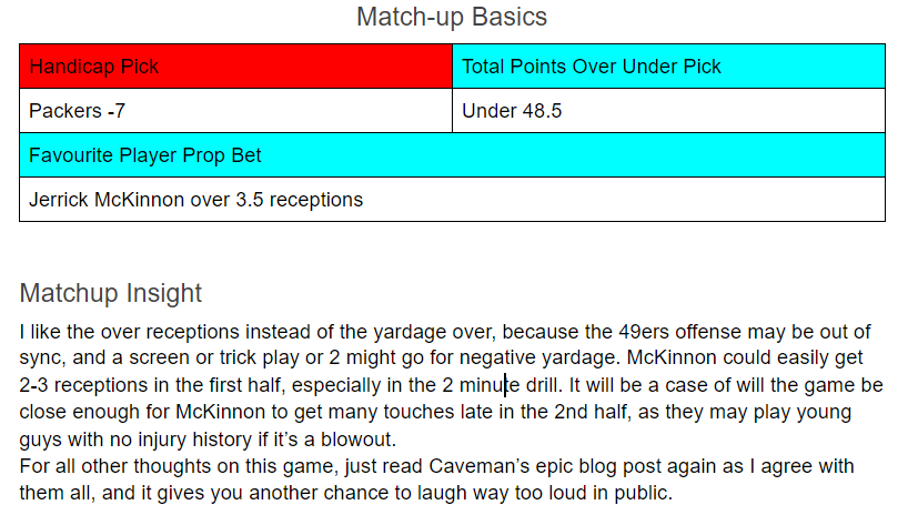 Caveman’s Sunday Ticket Week 9