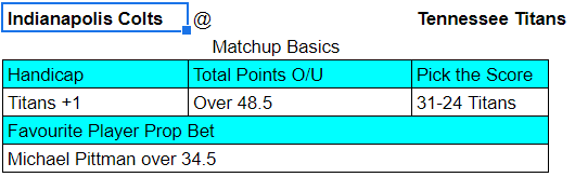 On offense, the Colts are playing horizontally, using a lot of jet sweep motion and screens. They have a very mobile offensive line who plays great in space but has struggled recently driving the opponent off the ball. They may have a hard time moving the Titans Jeffery Simmons, who has been dominant at times up front. The Colts also have a plethora of different running and receiving options, making it difficult to bet on many RB or WR player props. Rivers also loves to spread the ball around. The only WR I like for total overs are Zach Pascal and Michael Pittman. The only player you can really trust to get targets this game for the Colts is Trey Burton, but that is only because the other options and TE are hurt. If you are going to be on Phillip Rivers, I would lean more on the completions then the yards total.