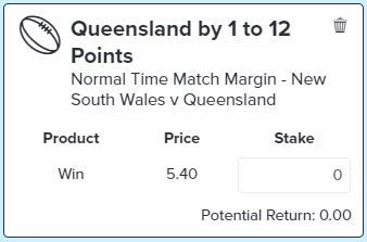 Queensland by 1-12 - Stake 1 Unit, Minimum Odds 4.8, Best Book - Topsport