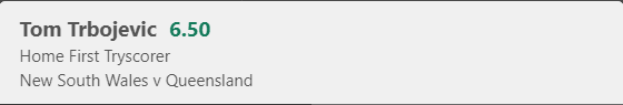 Tom Trbojevic First NSW Try Scorer - Stake 1 Unit, Minimum Odds 5.5, Best Book - BET365