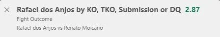 Rafael dos Anjos Double Chance KO/TKO or Sub - Stake 1.5 Units, Minimum Odds 2.5, Best Book - BET365