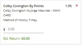 Colby Covington by Decision - Stake 2 Units, Minimum Odds 1.8, Best Book - Lads/Neds