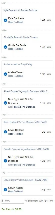 UFC Austin Super Action Multi - Stake 1 Unit, Minimum Odds 9.5, Best Book - Lads/Neds