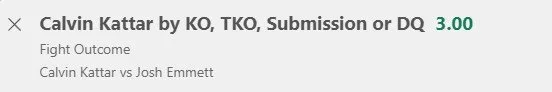 Calvin Kattar Via KO/TKO or Sub - Stake 1.5 Units, Minimum Odds 2.7, Best Book - BET365