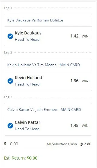 Kevin Holland Via KO/TKO or Sub - Stake 2 Units, Minimum Odds 2.3, Best Book - Sportsbet