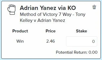 Adrian Yanez Via KO/TKO - Stake 1.5 Units, Minimum Odds 2.2, Best Book - Topsport