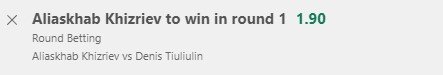 Aliaskhab Khizriev to win in RD1 - Stake 1.5 Units, Minimum Odds 1.75, Best Book - BET365