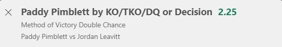 Paddy Pimblett is quickly becoming a fan favourite hype train, from his witty quips to his post-fight indulgences and his belief that he can one day be the champion. While I only encourage 2 of these three things, Pimblett has a clear advantage on the feet in this match. Leavitt is a strong grappler who is probably Pimbletts most significant attribute as well; however, unlike Pimblett, Leavitt has an inferior striking ability. Pimblett will likely win all the standing exchanges and can defend submissions well if taken to the mat. I can see either a KO or a decision victory for Pimblett here, who should be wary of Leavitt's submission ability. I am hoping a win here pushes Pimblett close to the rankings as I am gearing up to go against him in a big way as soon as he faces a fighter with more technical skill. As much of a personality that Pimblett is, I can't see him becoming a champion or even being in the conversation in the UFC.