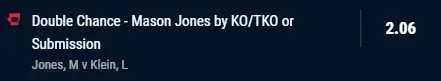 Mason Jones is a brilliant fighter who will look to gain some momentum after a great win over another top-tier prospect in David Onama. Jones has solid hands and elite-level grappling, which will be too much for the overhyped Klein. Klein has a chance with his lethal head kicks but has shown poor wrestling, and each kick will give Jones a potential opening to take Klein down. Klein has a poor gas tank as the fight continues, and Jones will be looking to finish the fight as quickly as he can after coming in on the short notice.