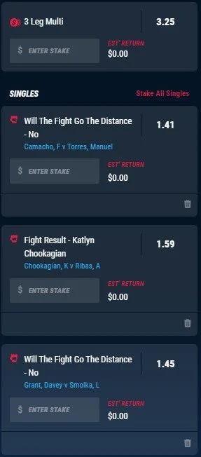UFC Vegas 54 Multi - Stake 2 Units, Minimum Odds 2.9, Best Book - Pointsbet