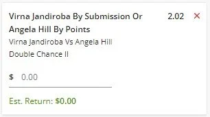 Double Chance, Jandiroba Via Sub or Hill Via Points - Stake 2 Units, Minimum Odds 1.85, Best Book - Lads/Neds