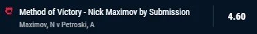 We have two fighters who will come into this match with similar gameplans. Both Maximov and Petroski will look to wrestle and get this fight to the ground. Petroski likes to use his wrestling while Maximov employs his Jiu-Jitsu game. There's a big difference in the quality of these fighters, however, as Maximov looks to be a mainstay in the division while Petroski doesn't look to be UFC quality. This is a step down from Maximov's previous fight in Soriano, and the extra time in the UFC will only improve his game. Maximov's last two UFC fights have both decided, so we are getting such a good line on the submission. Petroski is a fighter who has never seen the scorecards in his eight professional fights, and there are serious questions over his gas tank. Maximov has said that he is disappointed that he is fighting in the prelim opener and will have more to say about it on the microphone in the post-fight, which will carry more weight if he can secure the finish.