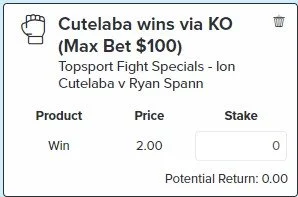 Cutelaba Via KO/TKO - Stake 2 Units, Minimum Odds 1.75, Best Book - Topsport