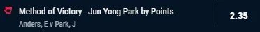 Jun Yong Park Via Decision - Stake 2 Units, Minimum Odds 2.0, Best Book - Pointsbet