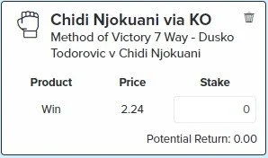 Chidi Njokuani Via KO/TKO - Stake 2 Units, Minimum Odds 2.0, Best Book - Topsport