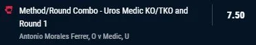Uros Medic Via 1st RD KO/TKO - Stake 0.5 Units, Minimum Odds 6.0, Best Book - Pointsbet