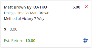 Matt Brown by KO/TKO - Stake 1 Unit, Minimum Odds 5.4, Best Book - Lads/Neds