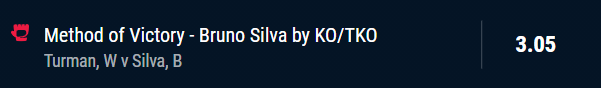 Bruno Silva by KO/TKO - Stake 1.5 Units, Minimum Odds 2.75, Best Book - Pointsbet