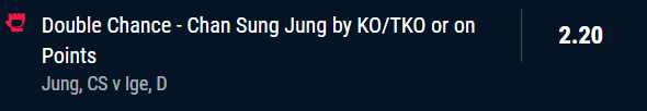 Chan Sung Jung Double Chance, KO/TKO or Points - Stake 2 Units, Minimum Odds 2.0, Best Book - Pointsbet
