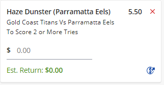 Haze Dunster 2+ Tries - Stake 1 Unit, Minimum Odds 4.5, Best Book - Lads/Neds
