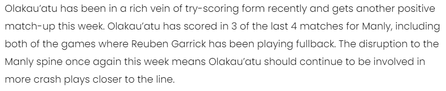 Haumole Olakau’atu Anytime Tryscorer - Stake 1.5 Units, Minimum Odds 2.8, Best Book - Sportsbet