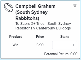Campbell Graham 2+ Tries - Stake 1 Unit, Minimum Odds 4.8, Best Book - Topsport