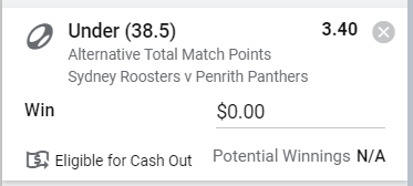 Roosters/Panthers Alternative Total Under 38.5 - Stake 1.5 Units, Minimum Odds 3.0, Best Book - Sportsbet