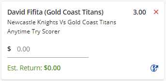 David Fifita Anytime Try - Stake 1.5 Units, Minimum Odds 2.5, Best Book - Lads/Neds