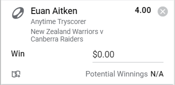 Euan Aitken Anytime Try - Stake 1.5 Units, Minimum Odds 3.0, Best Book Sportsbet