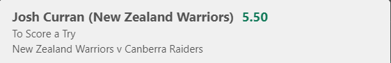 Josh Curran Anytime Try - Stake 1.5 Units, Minimum Odds 3.5, Best Book - BET365