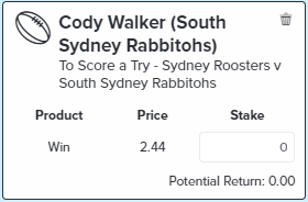 Cody Walker Anytime Try - Stake 1.5 Units, Minimum Odds 2.1, Best Book - Topsport