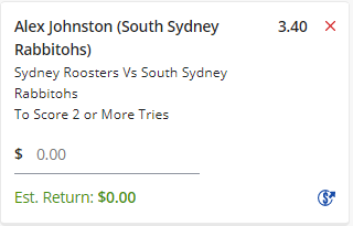 Alex Johnston 2+ Tries - Stake 2 Units, Minimum Odds 2.9, Best Book - Lasd/Neds