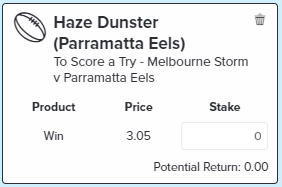 Haze Dunster Anytime Try - Stake 1.5 Units, Minimum Odds 2.5, Best Book - Topsport