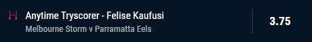 Felise Kaufusi Anytime Try - Stake 1 Unit, Minimum Odds 3.2, Best Book - Pointsbet