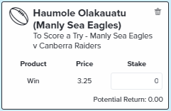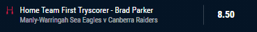 Parker First Manly Try - Stake 1 Unit, Minimum Odds 7.0, Best Book - Pointsbet