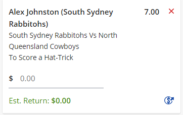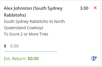 Johnston 2+ Tries - Stake 2 Units, Minimum Odds 2.4, Best Book - Lads/Neds