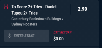 Tupou 2+ Tries - Stake 2 Units, Minimum Odds 2.6, Best Book - Pointsbet