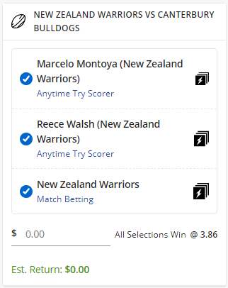 Roosters SGM - Stake 1.5 Units, Minimum Odds 3.6, Best Book - Lads/Neds
