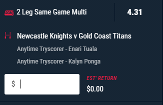 Knights SGM - Stake 1.5 Units, Minimum Odds 3.6, Best Book - Pointsbet