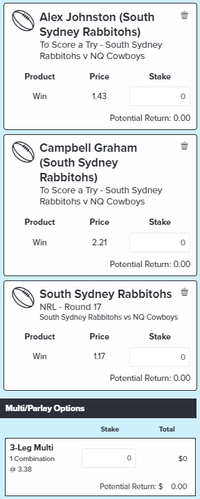 Rabbitohs SGM - Stake 2 Units, Minimum Odds 2.8, Best Book - Topsport