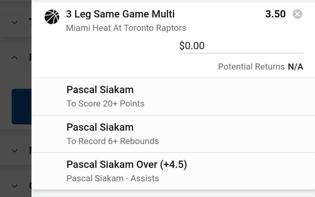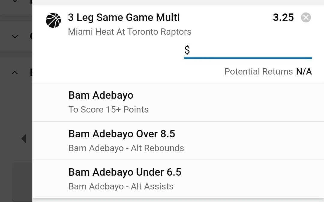 We're seeing great odds for Bam here. He's hit 20-10 multiple times this season. The Raptors have been playing great defense against opposition Centers but at this price it's a great bet.