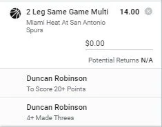 We're seeing really nice odds here for Duncan to hit this line against a Spurs team that play at Pace. Hopefully he can get free for a few 3s here. Lets go DRob 🔥🔥🔥