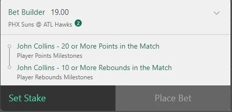John Collins 3 units. Take odds over $2.5. The Suns are a very tough matchup defensively. But this is a line John has hit in just under 50% of his games this season and the Suns play at pace which could factor into his rebound line. Let's go John 🔥🔥🔥